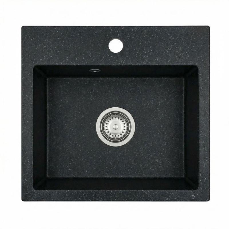 Graniteland Nera Granitový Drez 45x42 cm Vzhľad modrého kameňa Nastavenie s dierovacou doskou a nerezovou zátkou 1208971432