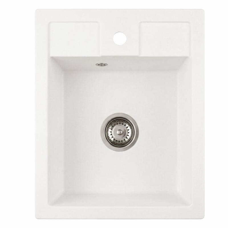 Graniteland Prest Granitový biely drez Tapwing s otvorom pre batériu nástavba 400x500mm s nerezovou zátkou 1208971424