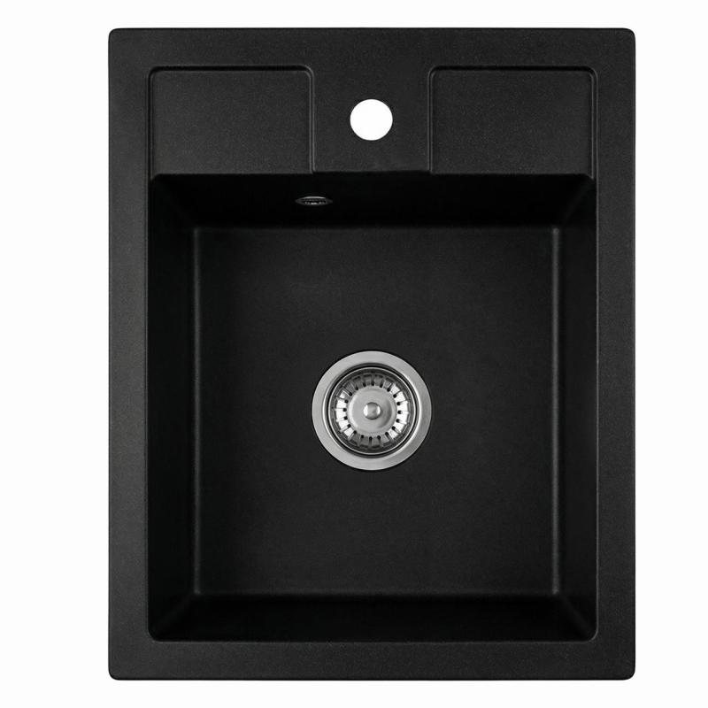 Graniteland Prest Granitový čierny drez Tapwing s otvorom pre batériu, montáž na povrch 400x500mm s nerezovou zátkou 1208971421