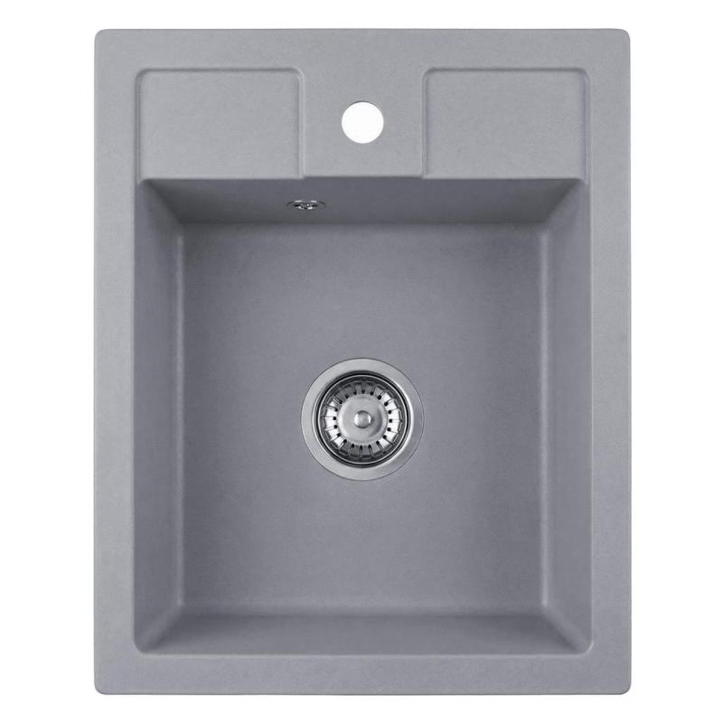 Graniteland Prest Granitový sivý drez Tapwing s otvorom pre batériu, nástavbový 400x500mm s nerezovým uzáverom 1208971425