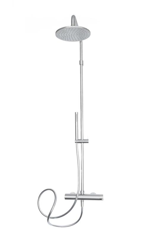 Sprchová kombinácia je vyrobená z vysoko kvalitnej mosadze a povrchovo upravená odolným chrómovaným náterom. To jej dodáva luxusný vzhľad, vynikajúcu odolnosť proti opotrebeniu a dlhodobú spoľahlivosť. Elegantný dizajn sa perfektne hodí do moderných a dizajnových kúpeľní.