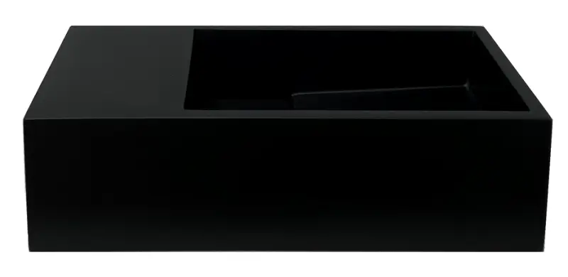 Solid-S Umyvadlo z materiálu Solid Surface, matná čierna, rozmery Š36 x H18 x V10 cm, s krytom, model na ľavú stranu bez otvoru na batériu, 1208954157