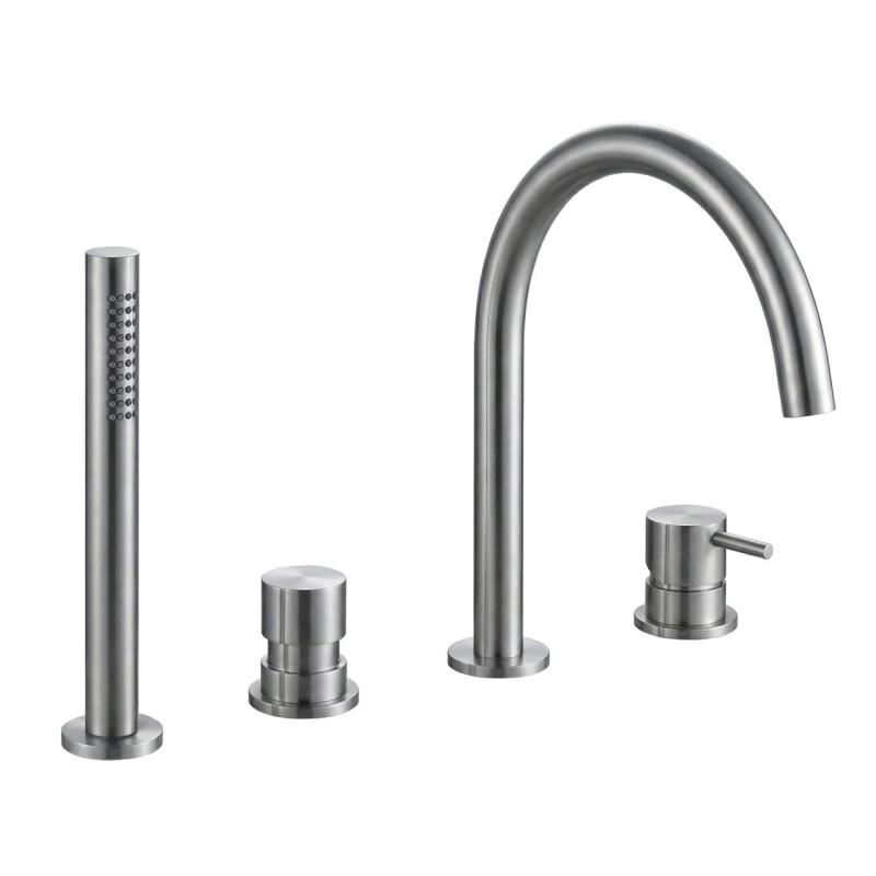 Vodná revolúcia Flow 4-otvorová vaňová batéria pre montáž na okraj vane, celá z nehrdzavejúcej ocele T138IE, je krásnym doplnkom vašej kúpeľne. Vďaka svojmu čistému a modernému dizajnu bude táto vaňová batéria skutočným magnetom na pohľad vo vašej kúpeľni.